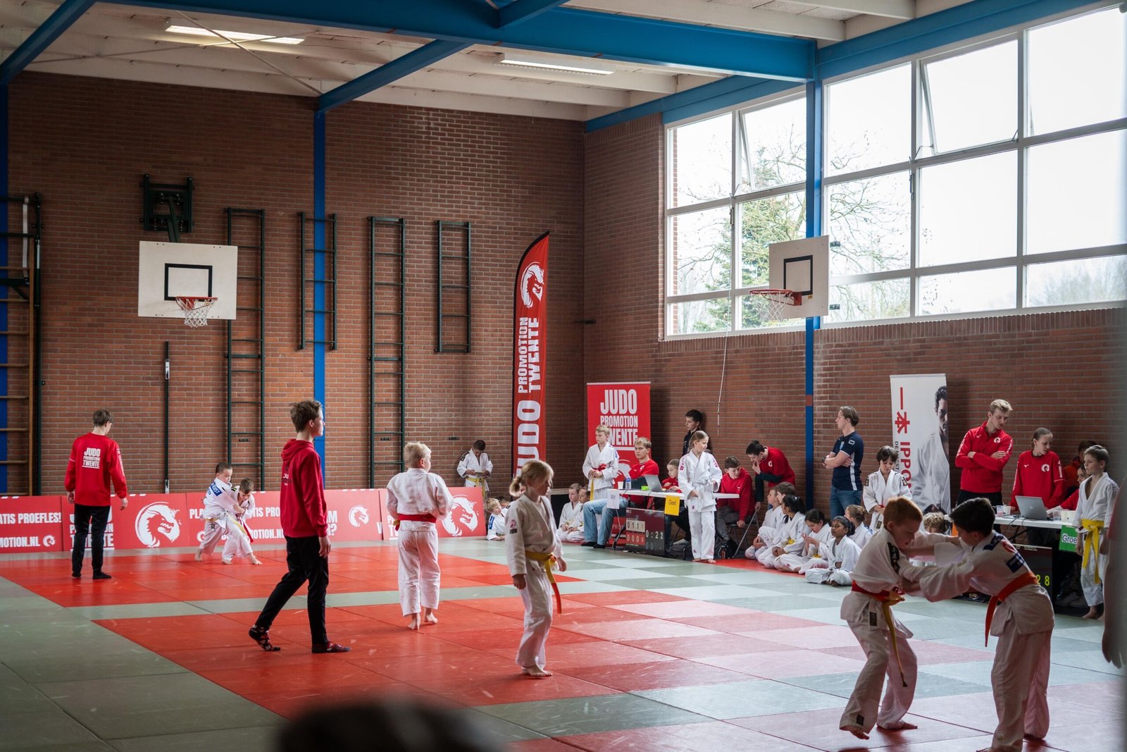 Omdat we onlangs een prachtige opbrengst hadden van de Grote Clubactie, konden we investeren in nieuwe technologie. Dankzij het harde werk van Bas en Quinten (JPT) en de flexibiliteit van Desiree (SJO) draaide het toernooi volledig digitaal. Hierdoor waren de namen van alle judoka’s duidelijk zichtbaar op de gloednieuwe TV-schermen en scoreborden. Deze professionele uitstraling maakte het toernooi voor zowel de deelnemers als het publiek extra bijzonder.